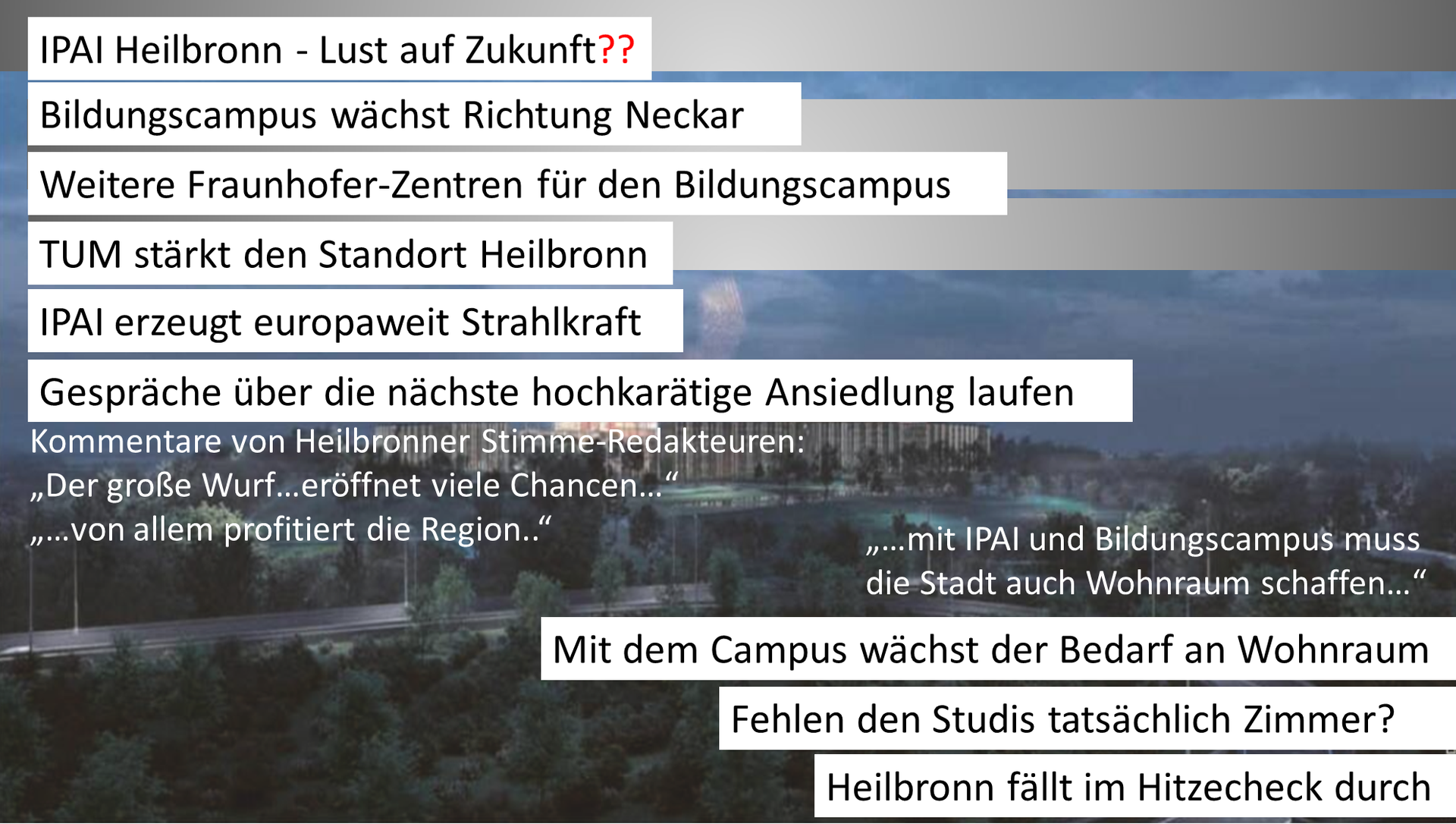 - Keine direkte Anbindung an Bad Friedrichshall, Neckarsulm, die Arbeitgeber, Bildungseinrichtungen und den ÖPNV östlich des Neckars (auch in Heilbronn)
