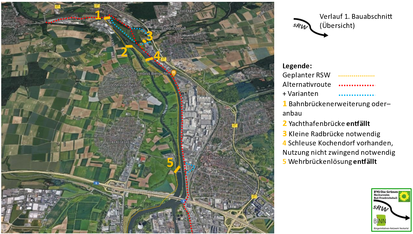 Rot: Geplanter RS3 westliche Neckarseite --> das bedeutet:
